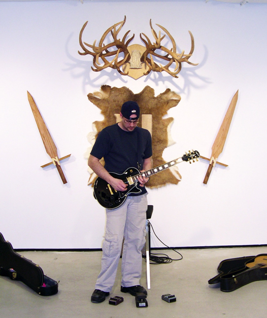 Deer hide, wood, steel, plaster, paint, guitars, amps, and Daryl