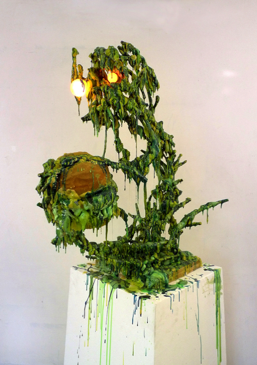 "Veggie Burger" 2012 steel, foam, wood, plastic, lights, pigment
